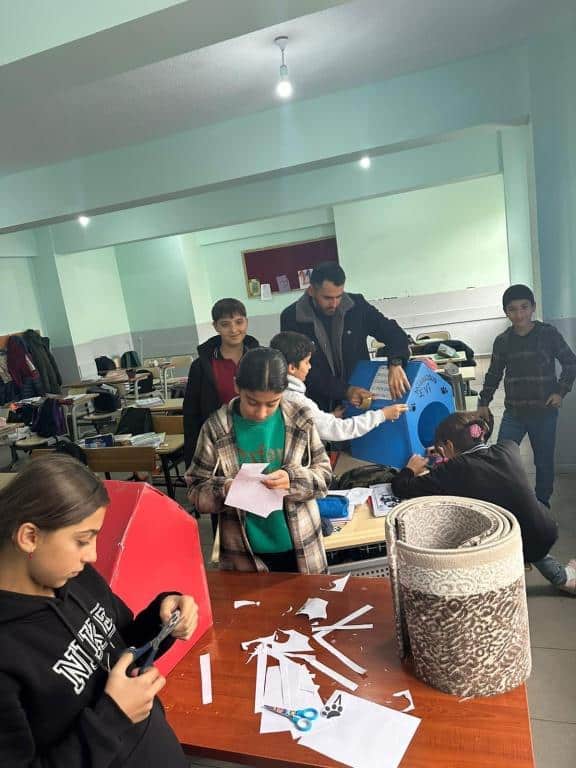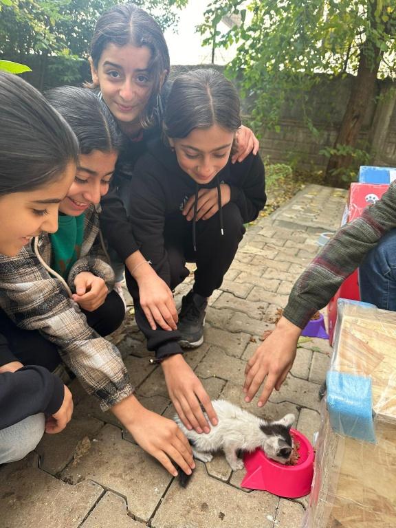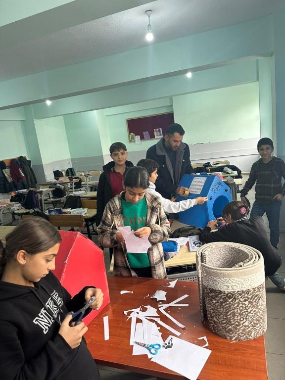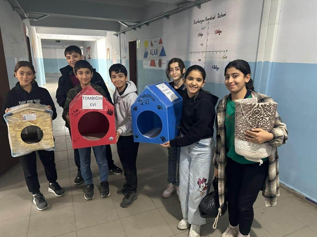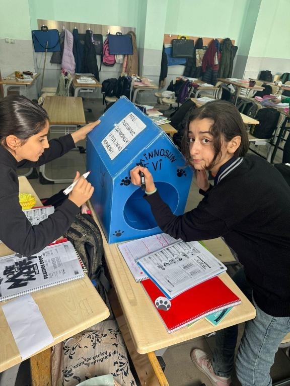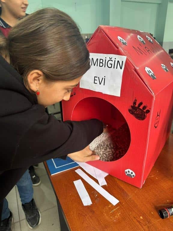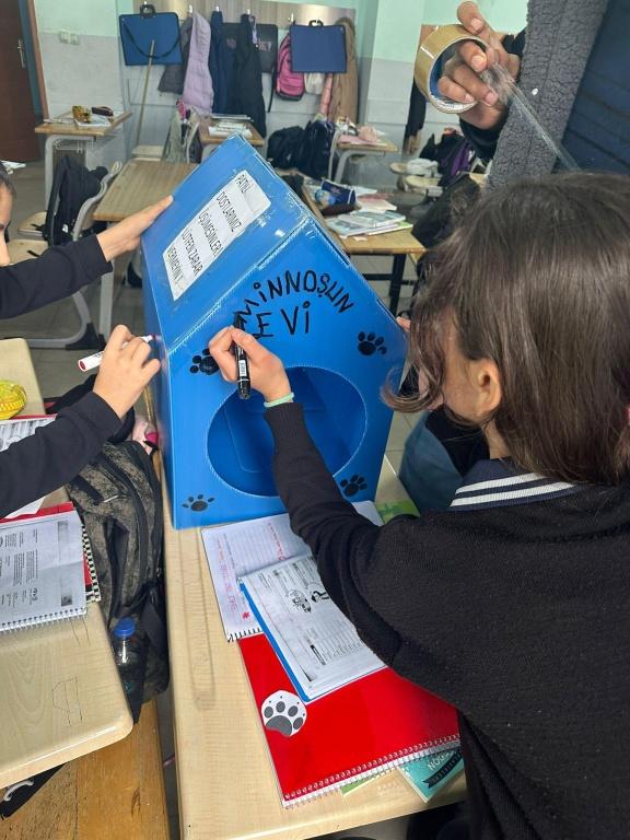 Öğrencilerimizle okulumuzda bulunan kediler için yaptığımız kedi evlerini okul bahçemize ekledik.